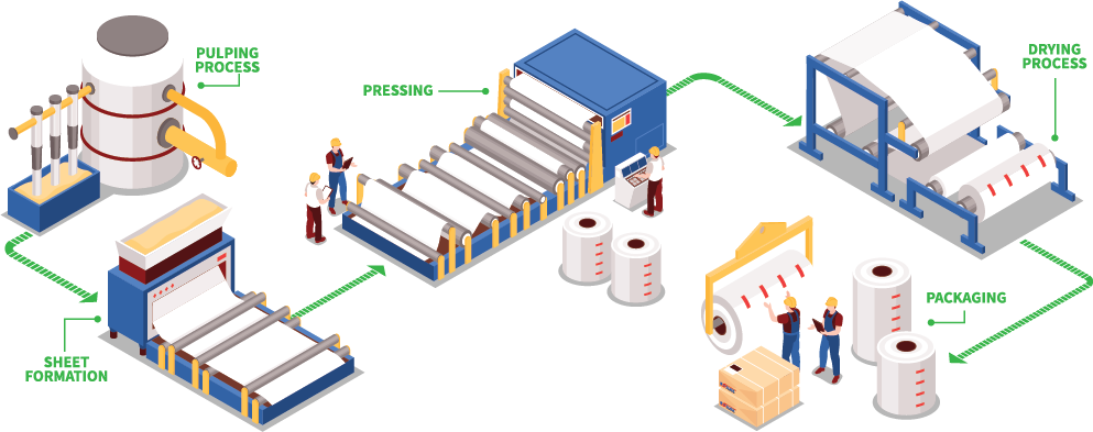 The paper sends to processing plants for slitting, coating, plying, printing etc. Every single stage of our manufacturing process is highly engineered in order to maintain the highest industrial standards.